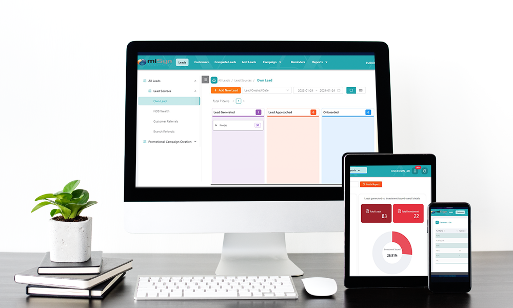 Obtain greater visibility over the customer capture journey through the MISYN LMS by- effectively tracking leads conversion into profitable business. The monitoring and control dashboards with real-time updates on sales activities provide higher visibility of sales initiatives and the accurate evaluation of performance of the sales teams. The easy to use templates and user friendly operations of the LMS platform along with the plugin Mobile App features creates true value for money by allowing the enterprise to be quick to market with a solution that enhances the productivity of the sales force.